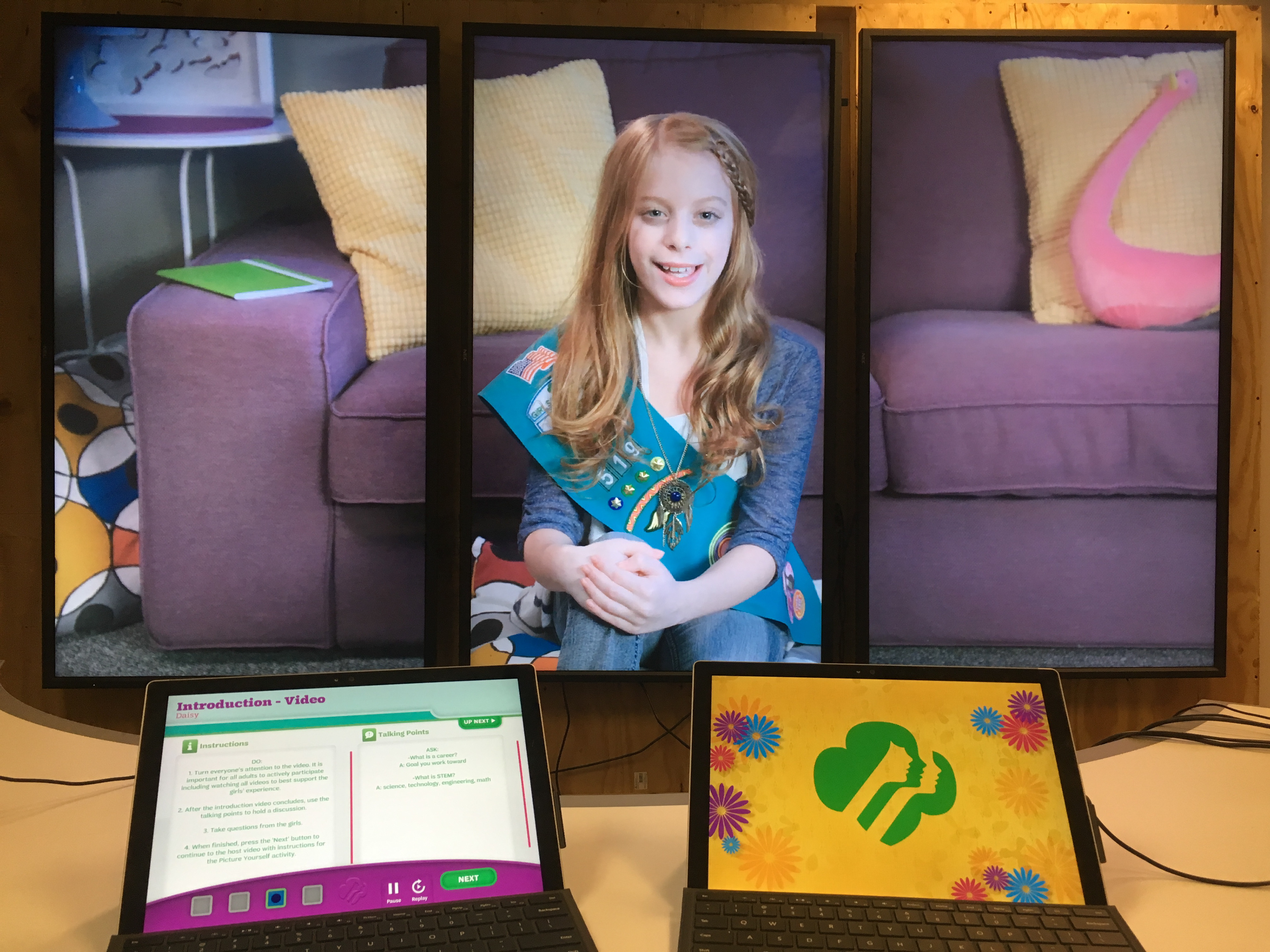 INSPIRE focuses on two key areas of leadership development that are cornerstones of the Girl Scout Leadership Experience - Career Exploration and Take Action. Each 1 ½ hour program introduces girls to inspirational role models on giant 80” television screens who share insights about their own career and leadership paths.